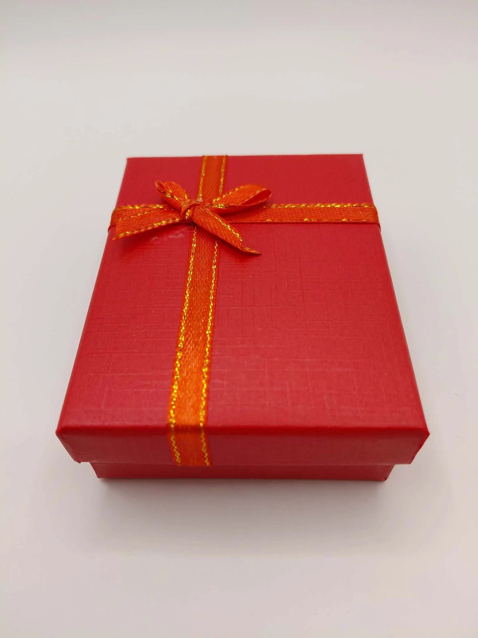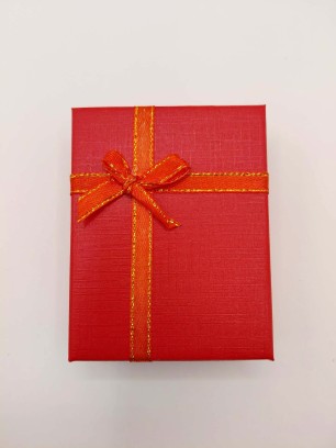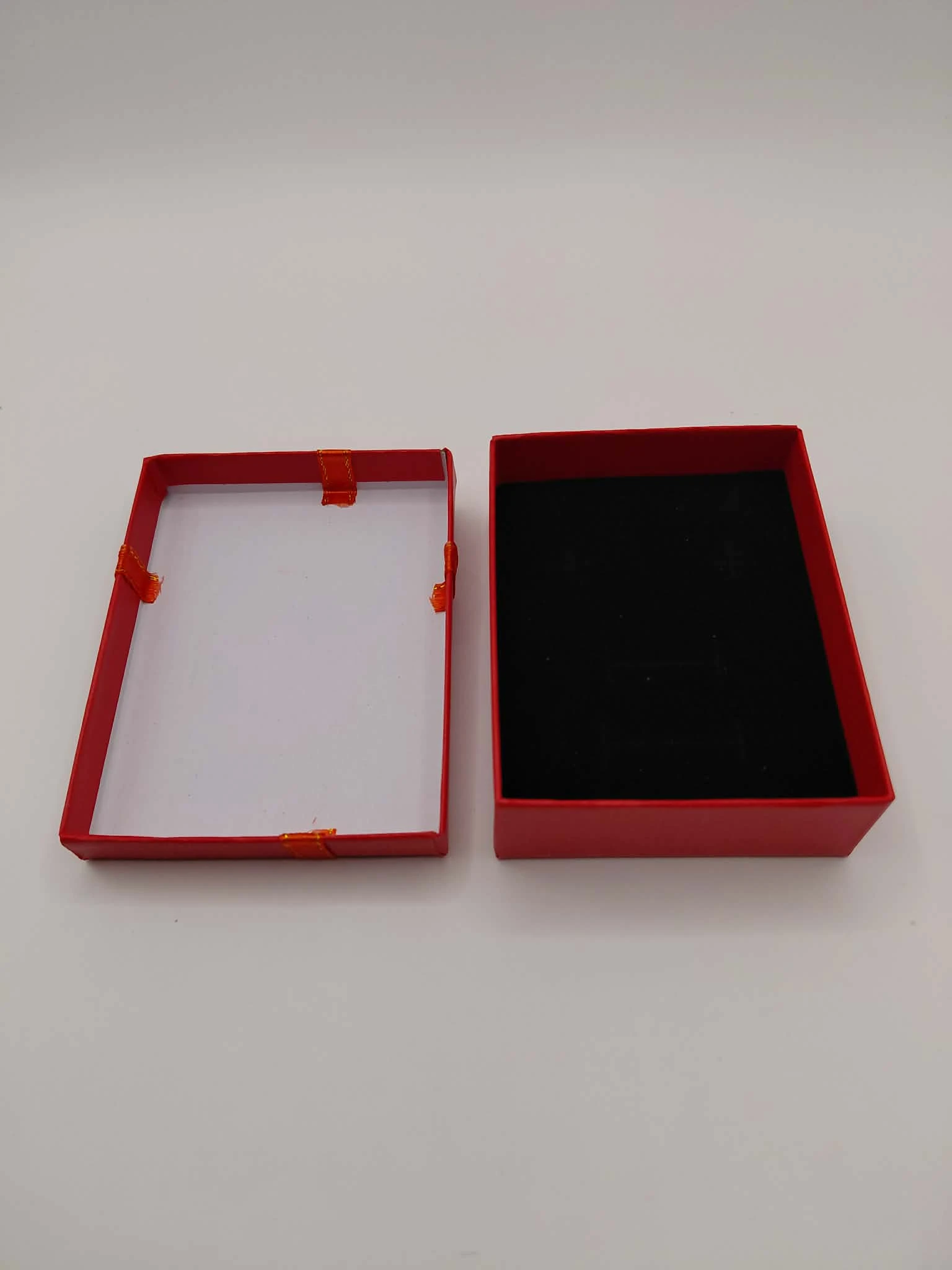 Pudełko wykonane jest z estetycznego materiału w klasycznym kolorze czerwonym, ozdobione dekoracyjną wstążką. Wnętrze zostało zaprojektowane tak, aby bezpiecznie przechowywać biżuterię.