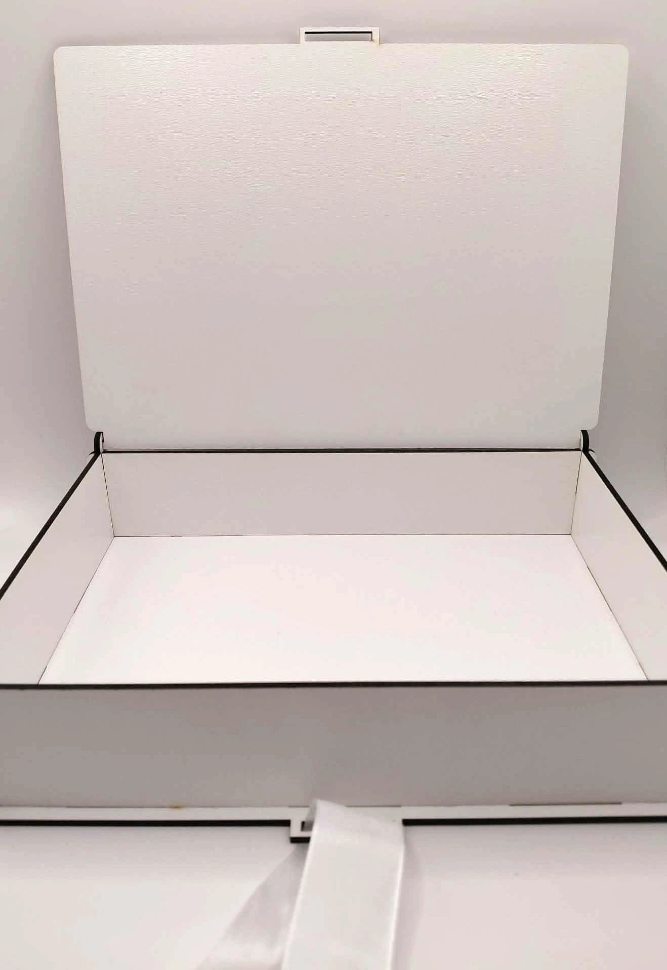 Zastosowanie płyty HDF gwarantuje sztywność i odporność na odkształcenia. Gładka, biała powierzchnia po obu stronach nadaje pudełku nowoczesny i czysty wygląd, idealny na wyjątkowe okazje.